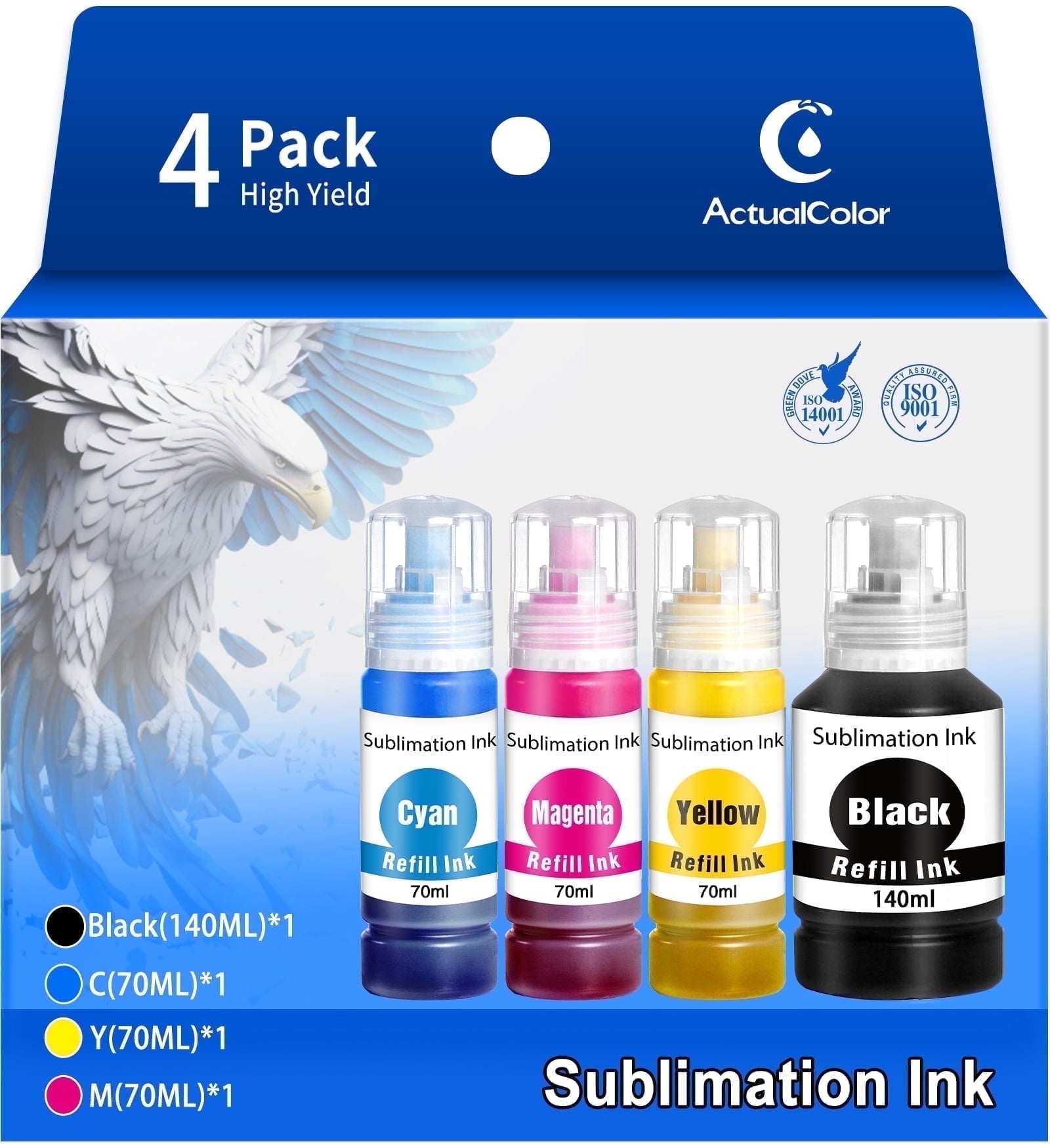350ML Sublimation Ink for Epson Ecotank Printers ET2400 ET2720 ET2750 ET2760 ET-2803 ET-4800 (1BK/1C/1M/1Y)